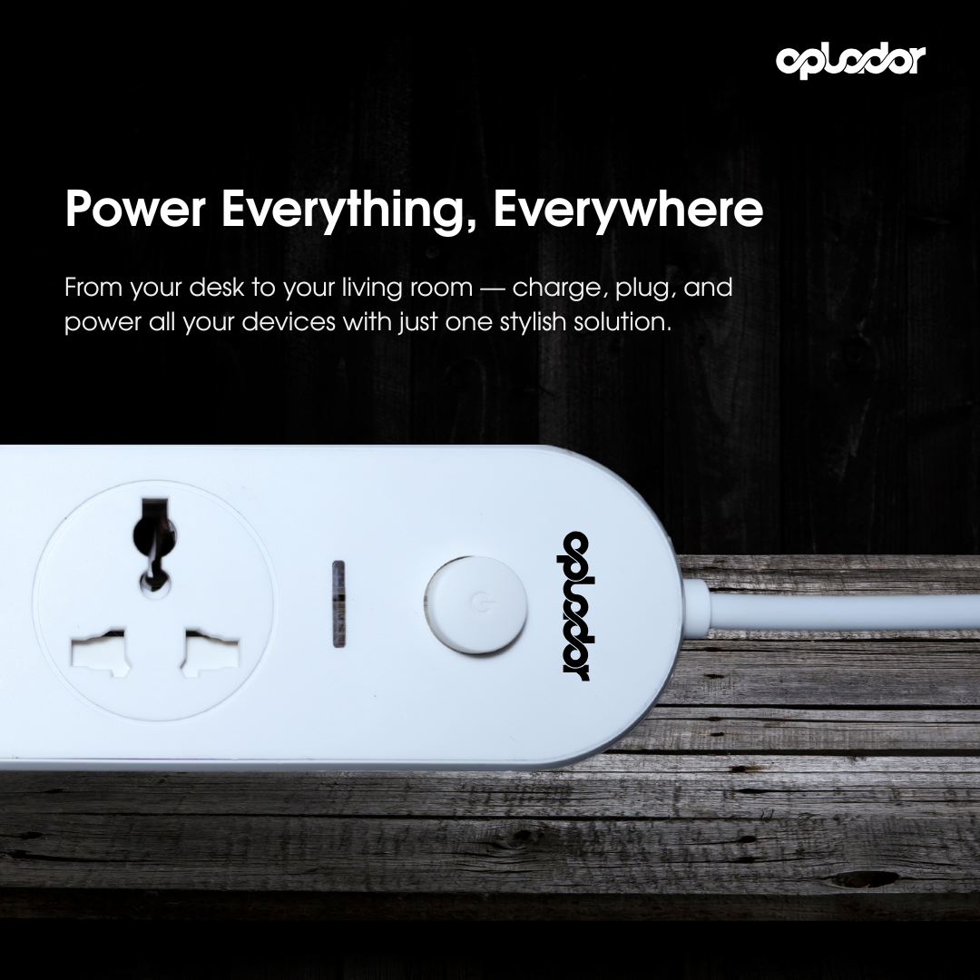 The Oplodor 4-Socket Power Strip is your perfect power companion for home or office use. Designed for functionality and safety, it comes equipped with surge protection4 universal sockets, and a push-button power switch for easy control. The 6ft long cable offers flexible placement, while the combined 100W output ensures efficient power distribution across devices. Built with 100% copper wiring, it guarantees safe and durable operation. Whether you’re powering gadgets, appliances, or chargers, Oplodor delivers smart engineering in a sleek and minimalist design.